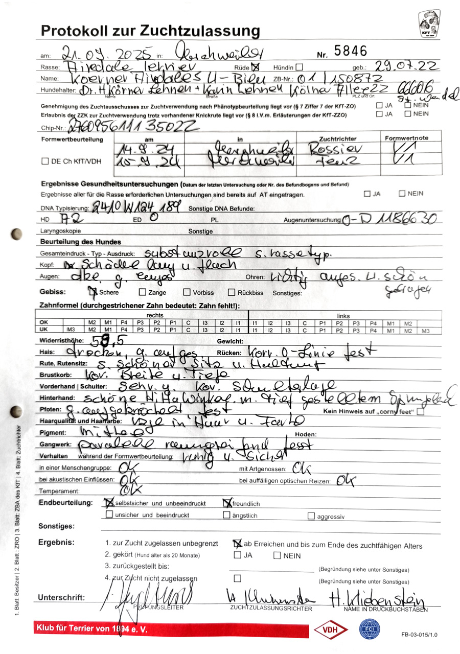 Er wurde bisher 6 Mal ausgestellt und konnte folgende Ergebnisse erzielen: